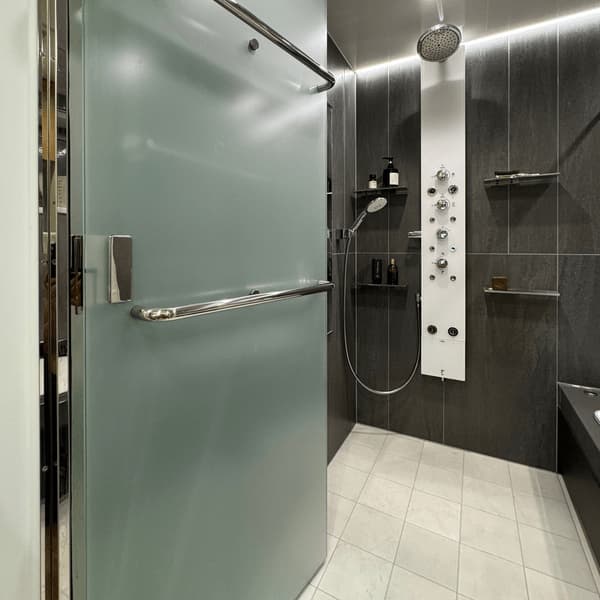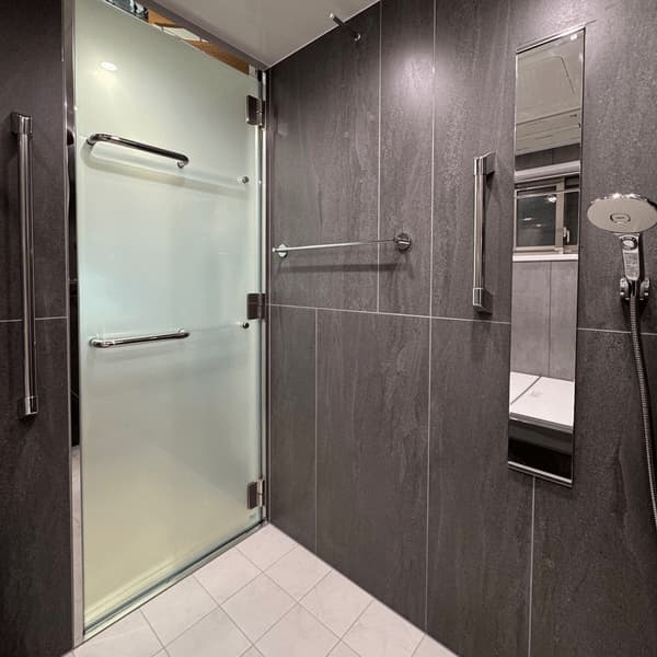 壁 | 3面 タイル貼り 1面 鋼板パネル LIXIL 400mm x 600mm |